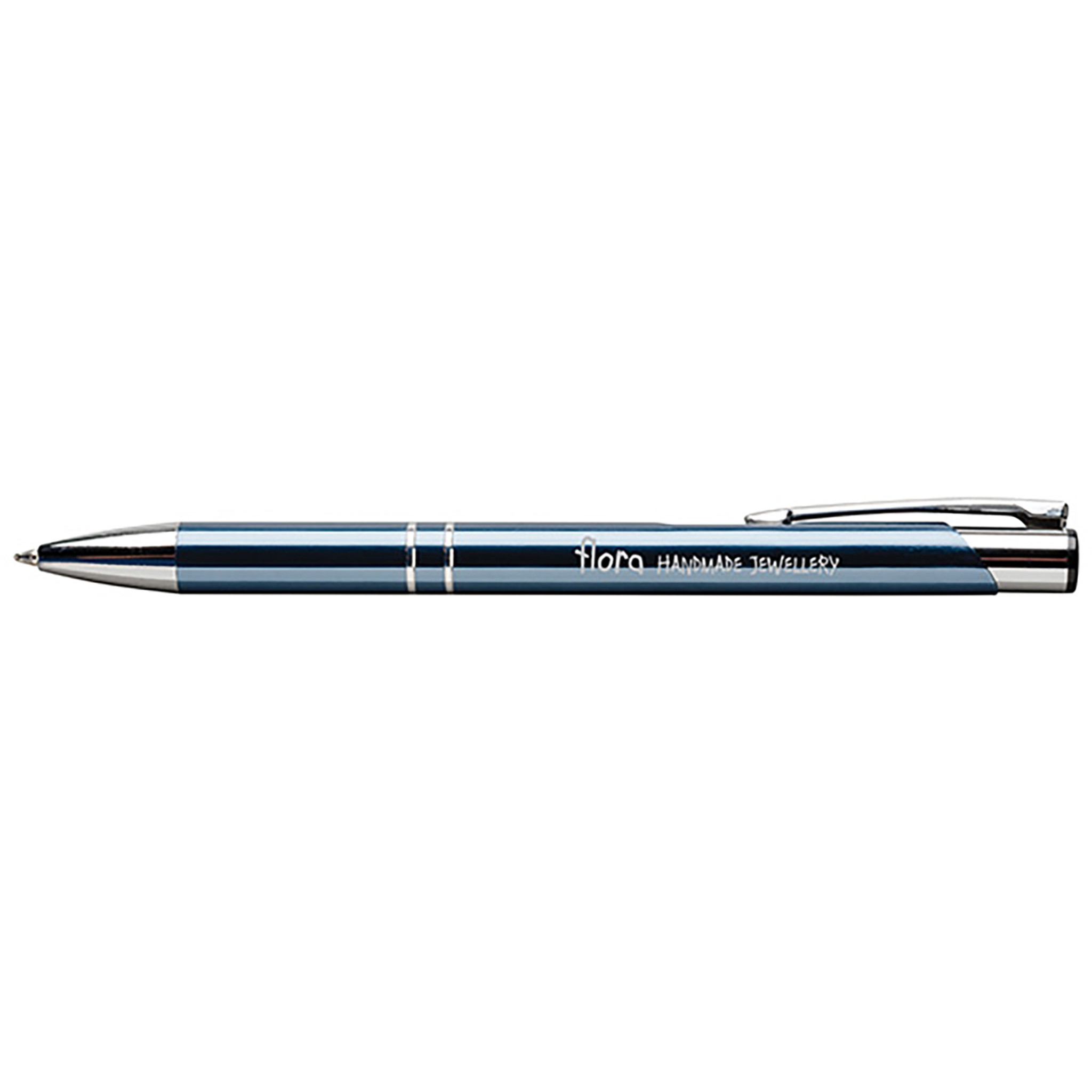 Executive Metal pen Classic push action retractable Shining silver accents and decorative bands Smooth writing ink Deep executive colours in a gloss finish Sleek lines for high end appeal at a budget price Individually polybagged Available in Blue ink only