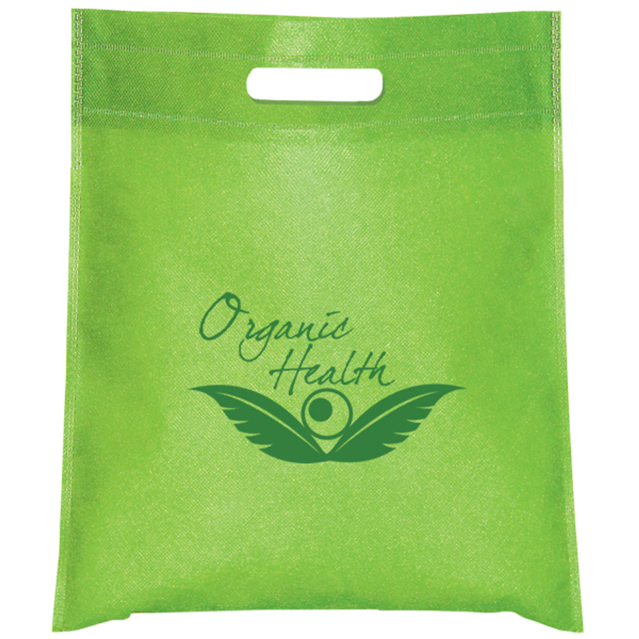Strong reinforced heat sealed seams Holds up to 5 lbs. (2.2 kgs.) Convenient cut-out handle A durable alternative to gift wrapping those smaller items Use at company events, tradeshows and for corporate gifts A lightweight alternative to use in retail stores, as handouts and to take the place of smaller plastic shopping bags Also available as a custom import option (minimum 30,000 pieces) contact your account manager for pricing