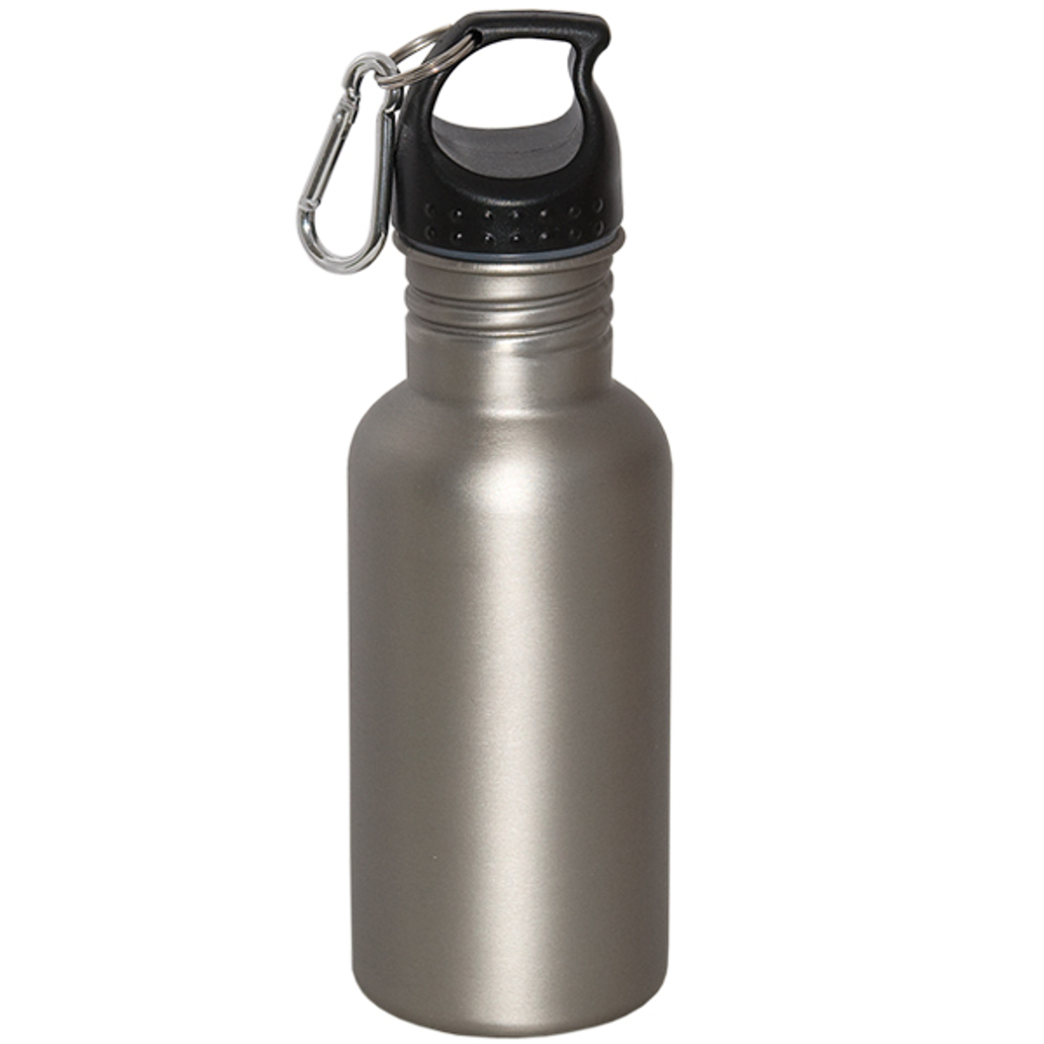 An industry first with a matte metallic finish Large wide mouth opening makes for easy drinking Holds up to 500 ml. (17 oz.) Safe alternative to plastic for your health and the environment Matching coloured plastic twist off cap (except Silver – black cap) with silver carabiner BPA free (Bisphenol A) and FDA Compliant.
