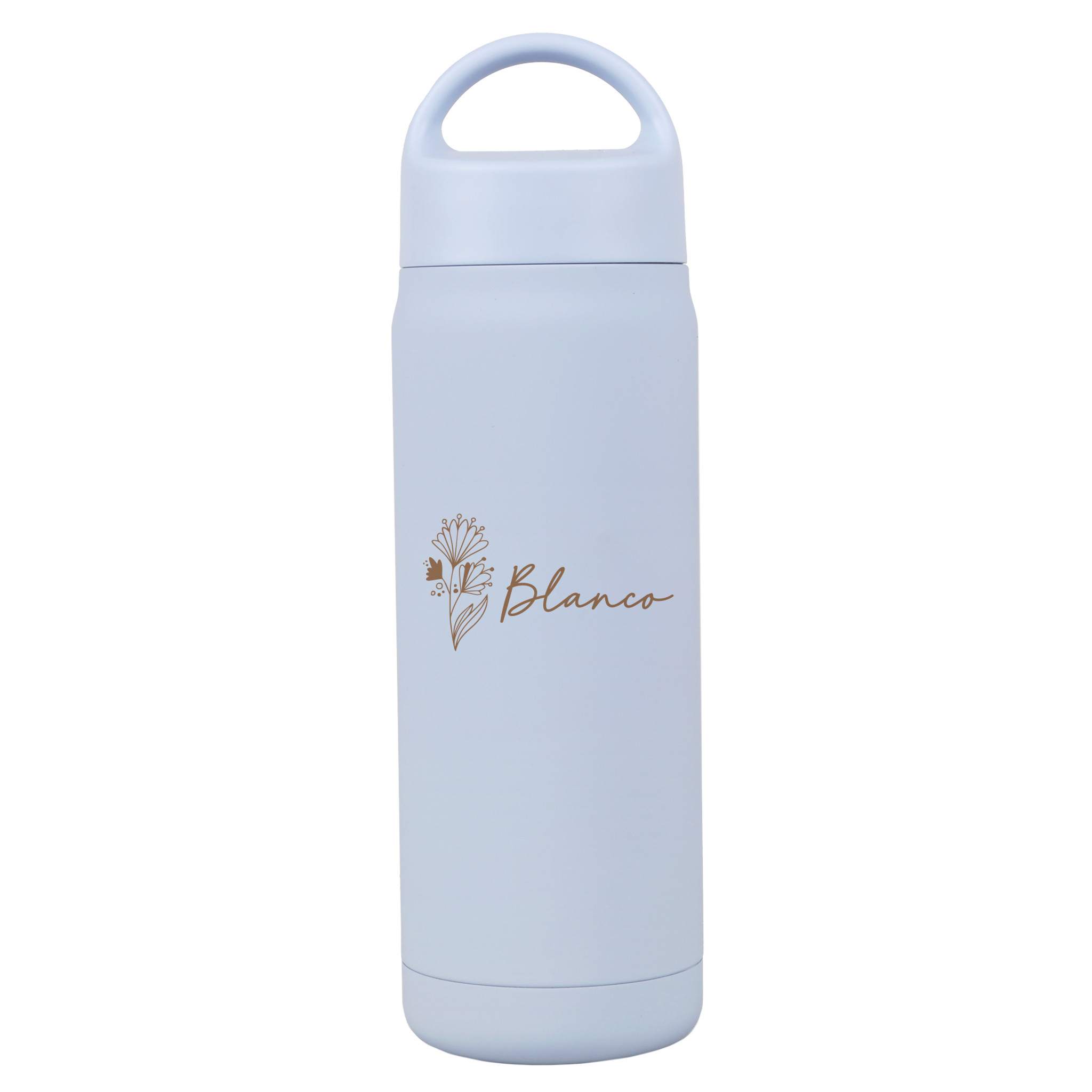 Refresh your brand's appeal with the Hydra Haven Recycled Stainless Steel Bottle. Built with sustainability in mind from 90% recycled stainless steel and an 18 fl. oz. capacity, this bottle is made for active lifestyles. Its sleek, soft-touch matte finish and pastel tone make it stand out, but your logo is what truly shines. An integrated handle in the lid makes it easy to carry, perfect for life on the go - whether you're at yoga, the office, or anywhere in between.
