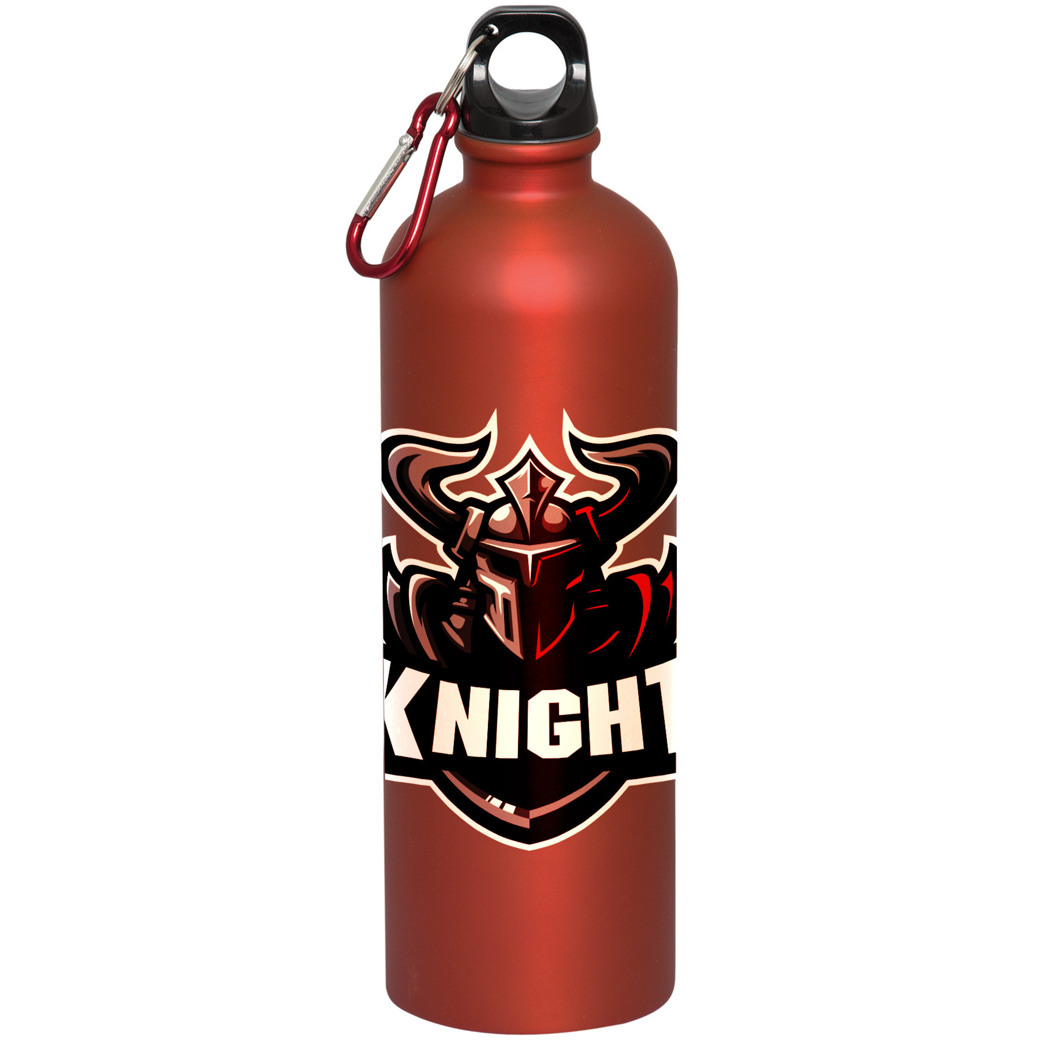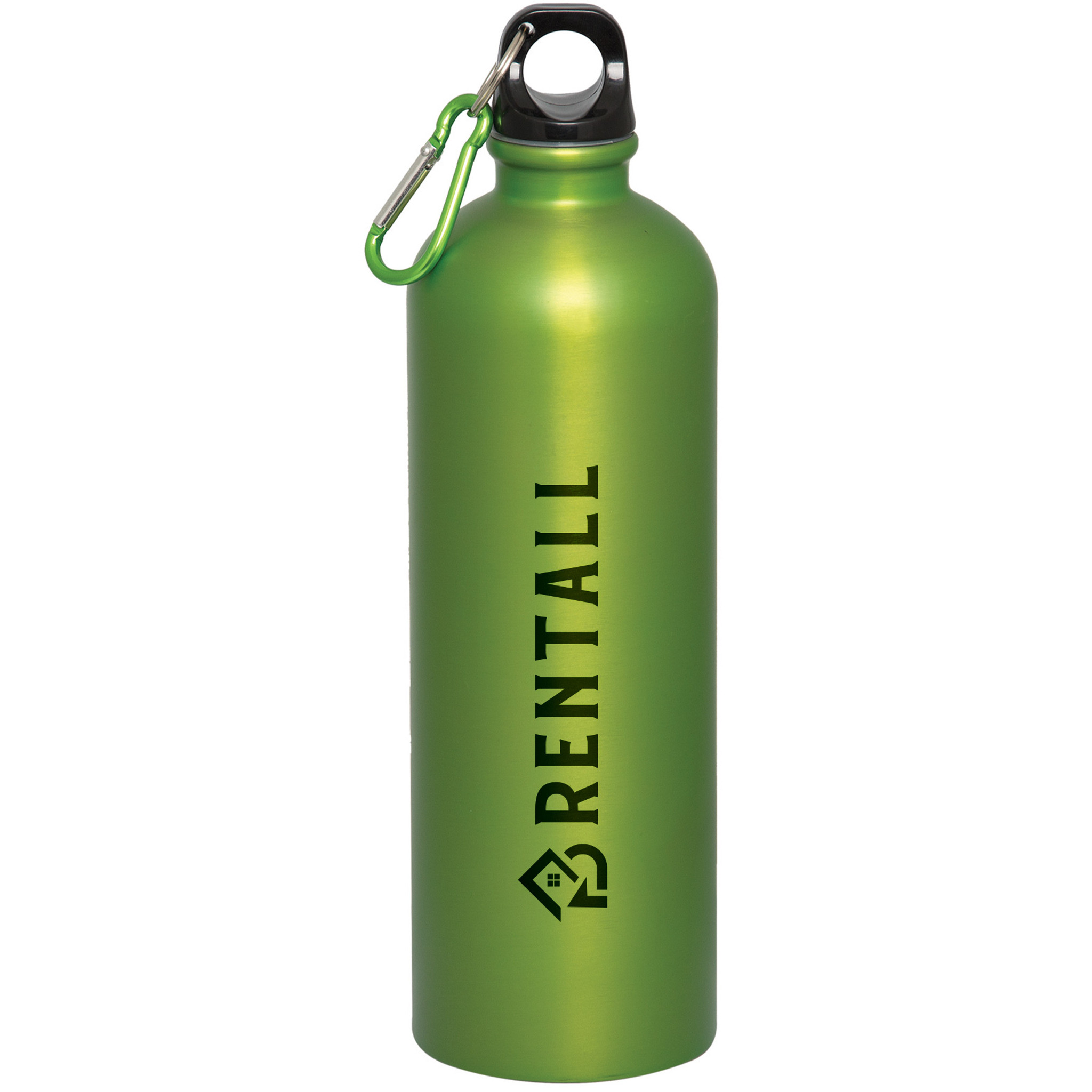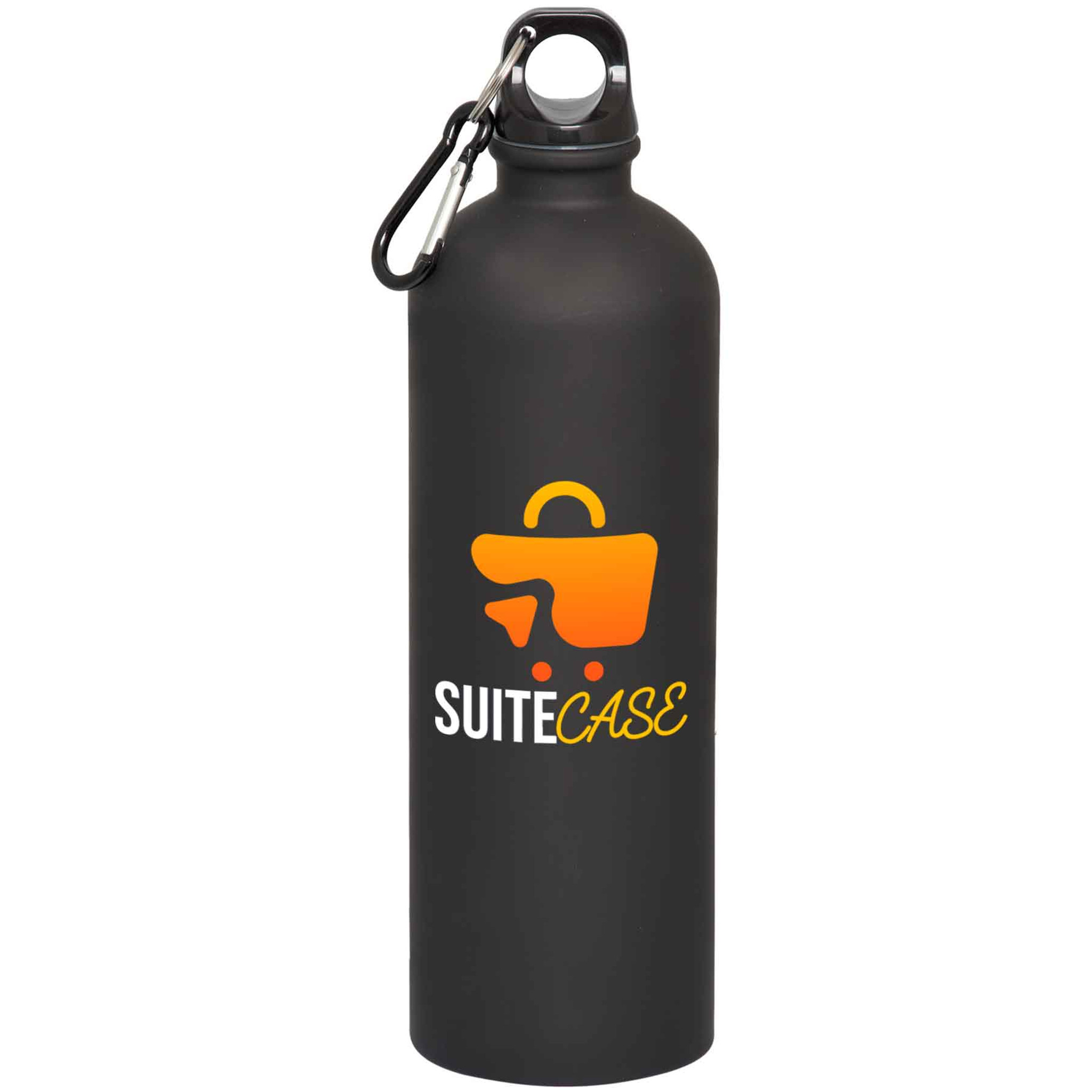 Black Plastic screw on lid Matching coloured carabiner with key ring Same style as WB3940 but in a matte finish like WB7075 Holds up to 750 ml. (25 oz.) BPA free and FDA compliant Customize with your company or sports team logo.
